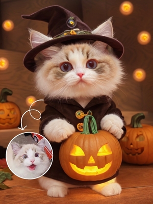 매년 가장 기대되는 날 중 하나인 할로윈! 귀여운 강아지와 고양이의 할로윈 코스튬이 궁금하시지 않나요!? “트릭 오어 트” AI 스타일은 여러분의 펫을 마녀 모자와 호박 랜턴을 든 깜찍한 할로윈 복장으로 바꿔줍니다!마치 실제로 찍은듯한 귀여운 펫 할로윈 사진을 SNS에 자랑해 보는 것 어떠세요?