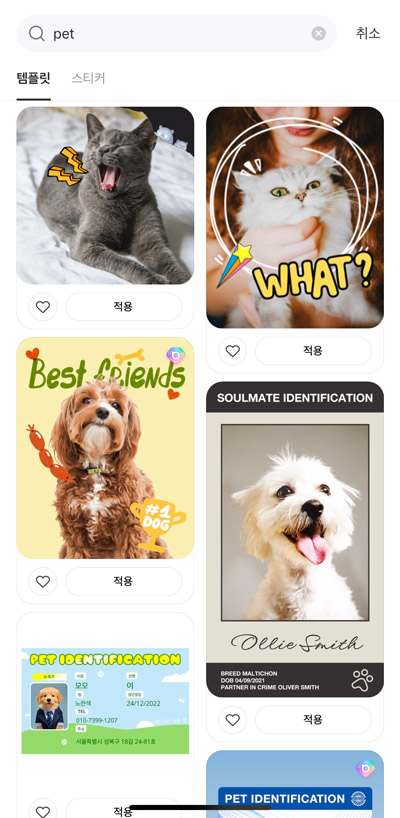 반려동물 사진 편집에 사용할 수있는 다양한 템플릿 → ◎