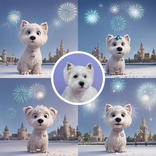 마치 주토피아의 한 장면 같은 스타일이죠? 디즈니 영화에 나올 것 같은 바로 그 느낌! 여러분의 귀여운 반려동물의 특징을 제대로 포착하여 귀엽고 사랑스러운 이미지를 생성해드립니다. 한 번의 클릭으로 4가지 다른 스타일이 나오니 이 중에 분명 마음에 드는 사진 하나쯤은 있겠죠?!