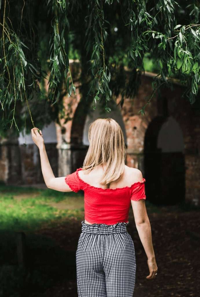 An easy way to take photos without showing face is to simply angle away from the camera. It gives enough away by showing your outfit and/or the background, keeping a steady level of privacy. There is also an artistic effect that makes the viewer feel involved, as if they are looking out at the scenery with you.