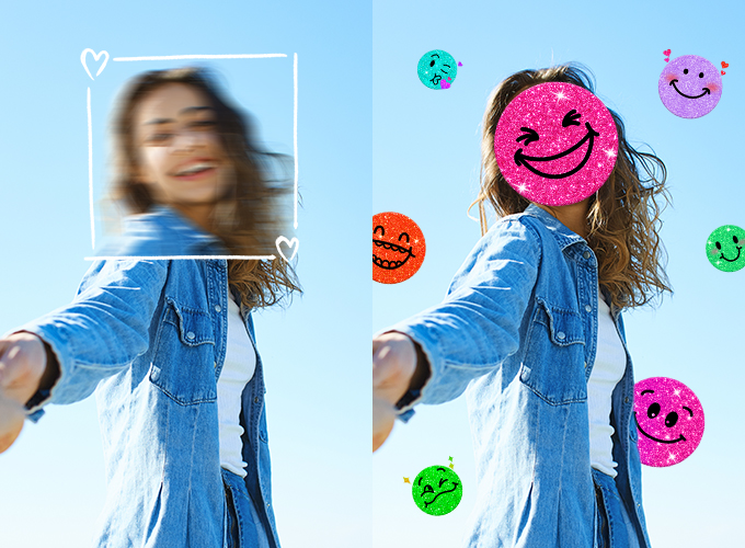 And this is the beautiful finished product! With this tool, you can become a great photo editor. Just look at how creatively you can cover your face!