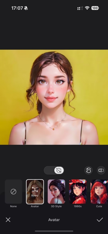 “BeautyPlus” has a total of nine AI avatars, two of which can be used for free. This feature allows you to create photos that look like a mix of anime and reality, so it’s a must-try if you have “BeautyPlus” installed. Another great feature is that even when you have multiple people in a photo, you can choose a different AI avatar for each one!