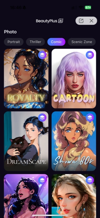 In particular, apps that turn photos into illustrations have a huge variety of AI illustrations that can be automatically generated for free! It’s fun to choose from a variety of styles, from manga-style to watercolor and oil painting-style, to match the atmosphere of your photo. Here, we’ll introduce some of the types of AI illustrations that can be generated with BeautyPlus.