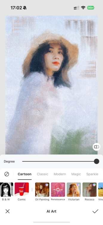 “Portrait” and “Manga+” can only be used on photos of people, so these are modes you should definitely try out! There are also plenty of AI illustrations in the style of paintings, such as oil paintings, so you can even create portrait-style photos ♡